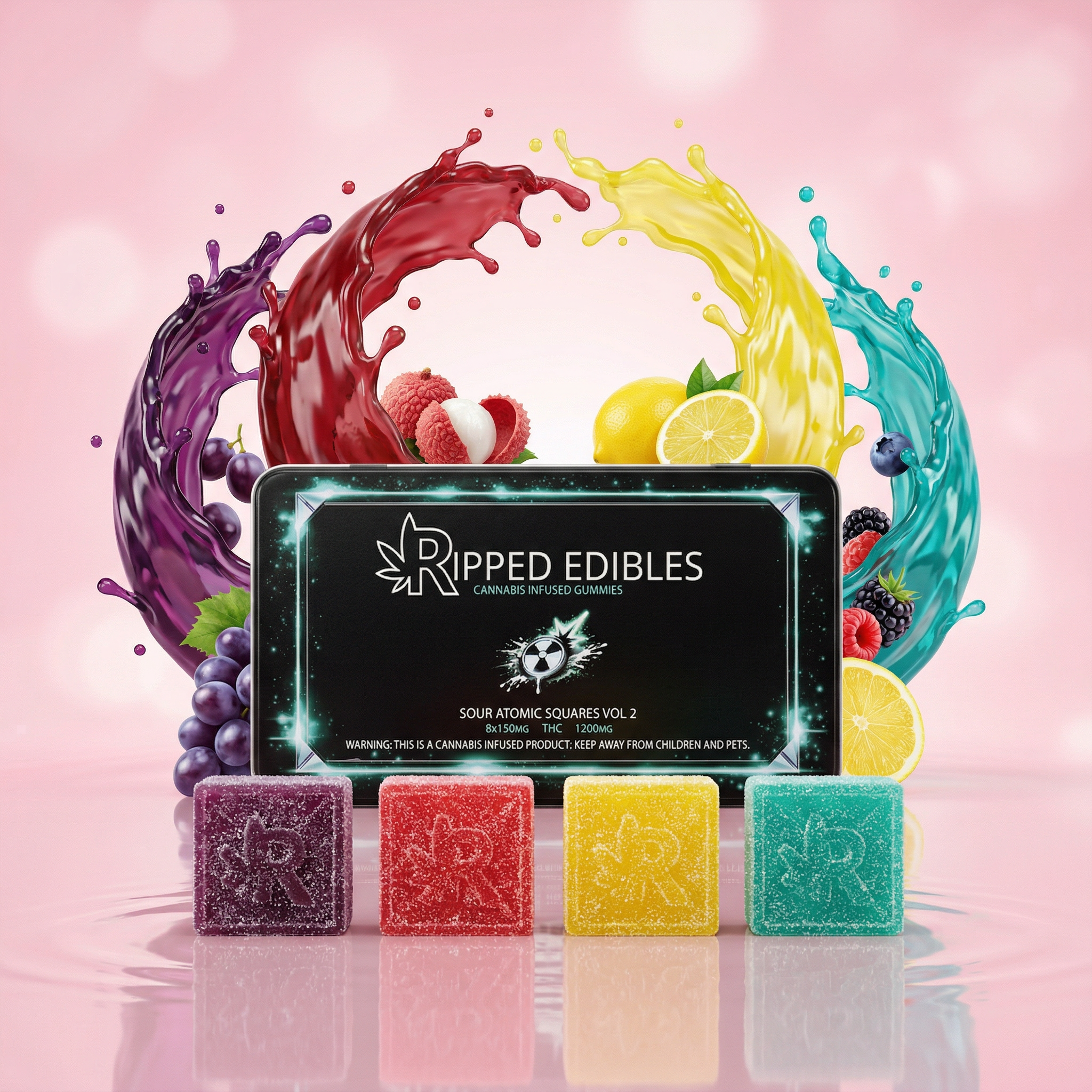 INGREDIENTS: GELATIN, SUGAR, CORN SYRUP, CITRIC ACID, NATURAL FLAVOURS & COLOURING AND CANNABIS INFUSED MCT OIL.